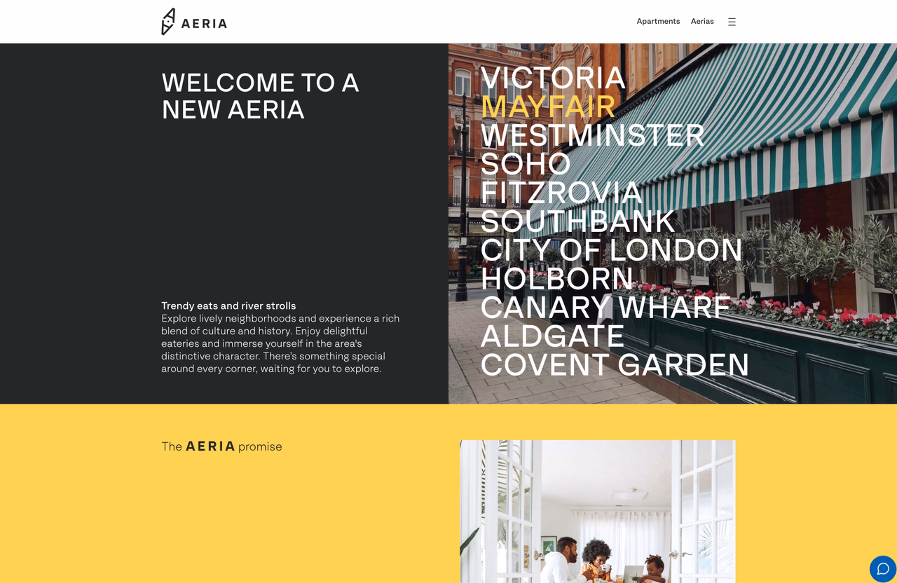 A CMS was built into the website to allow the marketing team at Aeria Apartments to update and add content in-house. They are able to choose from a number of different bespoke components, ensuring they have versatility when adding new content and pages to the website.